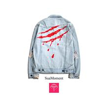 【LISA国潮】SuaMoment SUA 爆裂爪痕血爪水洗破洞男女牛仔夹克