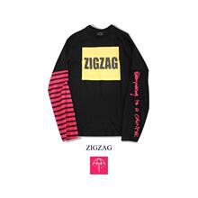 【LISA国潮】ZIGZAG 16AW 假两件黑红拼接条纹撞色长袖男女TEE恤