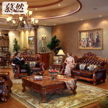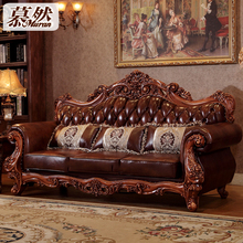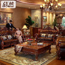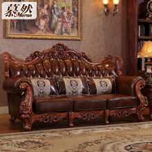 欧式真皮沙发 头层牛皮客厅家具 实木雕花组合沙发 美式皮艺沙发
