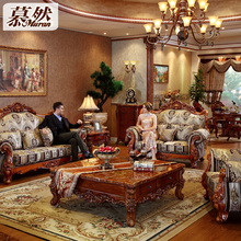 美式布艺沙发 实木雕花奢华沙发客厅组合家具 高档可拆洗欧式沙发