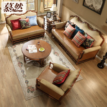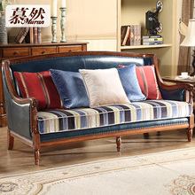 美式真皮沙发 客厅组合实木沙发 简约乡村田园沙发 美式布艺家具
