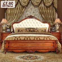 欧式真皮床1.8米 双人床实木雕花 头层牛皮皮艺床 卧室 美式家具