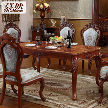 美式大理石餐桌新古典高档实木雕花长方形六人组合饭桌欧式餐台