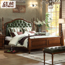 美式实木床双人床1.8米欧式单人床公主床婚床简美乡村油蜡真皮床