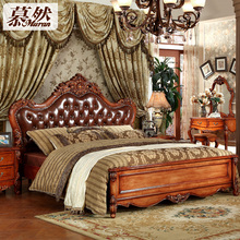欧式床 真皮床 双人床 实木雕花 1.8m米 卧室头层牛皮床 美式家具