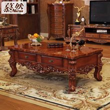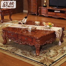 欧式大理石茶几 实木雕花奢华客厅长方几 钢化玻璃茶桌 美式家具