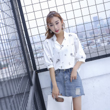 夏季新款学生宽松显瘦棉麻休闲百搭套头印花短袖上衣