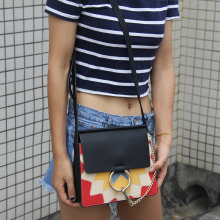 2016年秋新款明星同款女包faye链条圆环包单肩包撞色女包斜跨包包
