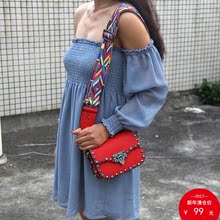2016春夏新款锁扣小方包女单肩彩色绿松石铆钉复古宽肩带斜挎小包