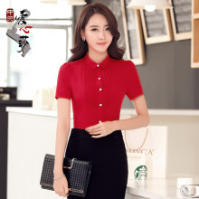 前台工作服夏装衬衫女 咖啡厅收银衬衣短袖 酒店餐厅服务员半袖