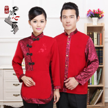 酒店工作服秋冬装男 中餐厅服务员工作服长袖加厚女 茶楼餐饮工装