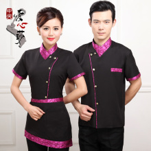酒店工作服夏装女饭店茶楼火锅店中餐厅服务员工作服短袖餐饮制服