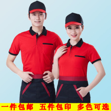 酒店工作服夏装T恤定制LOGO奶茶店快餐厅服务员工装火锅店工作服