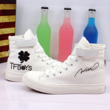 王源王俊凯同款女学生四叶草签名TF鞋子春季高帮平底魔术贴帆布鞋