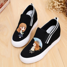 春季韩版女学生百搭低帮松糕跟厚底内增高涂鸦帆布鞋休闲平底布鞋