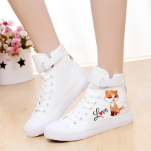 2017春季韩版百搭平跟女学生高帮系带卡通涂鸦帆布鞋休闲平底布鞋