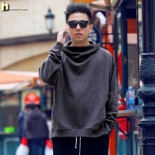 暗黑嘻哈潮牌围脖领连帽卫衣男女宽松大码纯色套头帽衫春夏薄外套