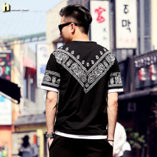 嘻哈小镇 腰果符文印花加肥加大码胖子纯棉假两件宽松短袖T恤男潮
