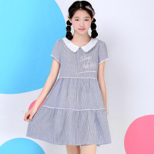 夏装新款韩版少女条纹连衣裙大码初中学生休闲裙中长款显瘦短袖裙