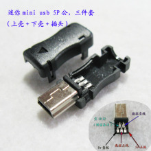 MINI USB 5P公头带壳T口 迷你5P插头 上下壳+插头 三件套miniusb
