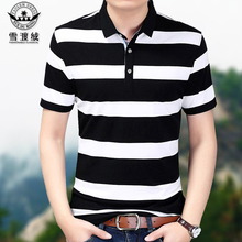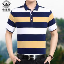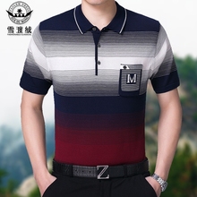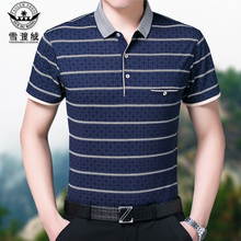 中年男士短袖t恤 翻领有条纹爸爸夏装冰丝针织衫丅男人父亲节衣服