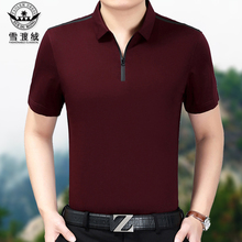 夏季短袖t恤男式宽松翻领有拉链纯色丝光棉半截袖中年爸爸装薄款