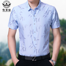 爸爸夏装短袖40-50岁30中年男人衬衫半袖丝光棉印花衬衣2017新款