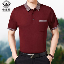 爸爸短袖t恤男夏40-50岁 中年人商务带领有兜土丝光棉丅血POLO衫