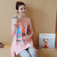 孕妇装2017新款孕妇上衣圆领中长款哺乳宽松大码韩国时尚长袖卫衣