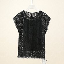 【A禅M】品牌折扣女装2017夏装新款 两件套勾花蕾丝衫镂空上衣女