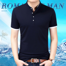 2017夏装短袖t恤男立领polo衫 青年男士纯色纯棉学生修身潮男上衣