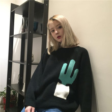 韩国ulzzang新款可爱童趣学生宽松加厚仙人掌套头针织衫毛衣女冬