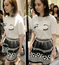 2017夏新款亮片刺绣眨眼睛T恤女纯棉明星杨幂同款短袖白色宽松潮
