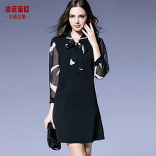 胖妹妹春装新款大码女装2017胖MM九分袖宽松显瘦时尚连衣裙中裙潮