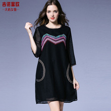 胖妹妹2017春夏新款欧美大码女装连衣裙胖mm宽松显瘦时尚打底裙潮