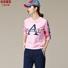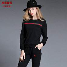胖妹妹春装套装2017新款大码女装两件套胖mm宽松显瘦上衣长裤t恤