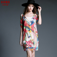 连衣裙女2017夏装新款欧美大码女装胖mm宽松印花短袖两件套裙