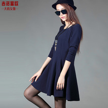 胖妹妹2017春装新款韩版大码女装胖MM针织连衣裙长袖显瘦打底裙潮