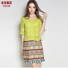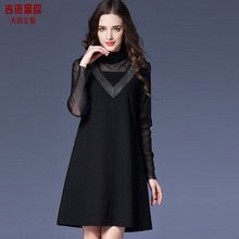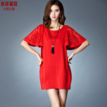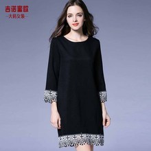 连衣裙女胖妹妹2017夏装新款韩版大码女装时尚蕾丝拼接显瘦中裙潮