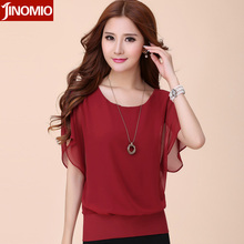 雪纺衫女2017夏装新款韩版大码女装胖mm短袖雪纺宽松显瘦蝙蝠衫潮