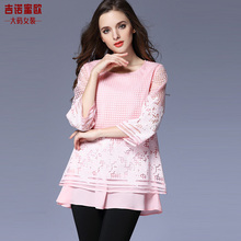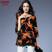 2017夏装新款韩版大码女装胖mm宽松显瘦雪纺衫打底衫上衣衬衫女潮