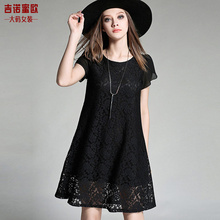 连衣裙女2017夏装新款欧美大码女装宽松显瘦蕾丝打底纯色A字裙潮