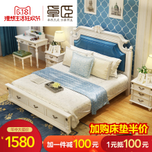 卓臣 美式床主卧实木双人床1.8米欧式田园床韩式公主床高箱储物床