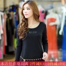 春夏季胖MM大码韩版宽松休闲V领字母长袖T恤纯棉打底衫学生上衣女