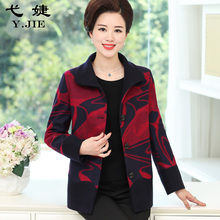 弋婕中老年女装春装翻领花色毛呢外套女新款妈妈装大码上衣