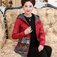 弋婕春装新款中老年妈妈装大码休闲宽松连帽复古拉链外套