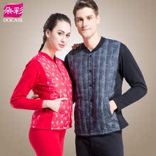 朵彩羽绒印花加厚加绒保暖内衣套装 中老年男女士开衫式秋衣秋裤