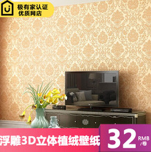 欧式无纺布墙纸 立体浮雕植绒烫金3D壁纸卧室客厅电视背景墙包邮
