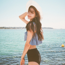 Pink Lady 韩国复古荷叶边高腰遮肚小胸钢托聚拢分体比基尼泳衣