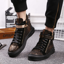高帮鞋男鞋夏季透气潮鞋ifashion韩版男士马丁靴金色内增高短靴子